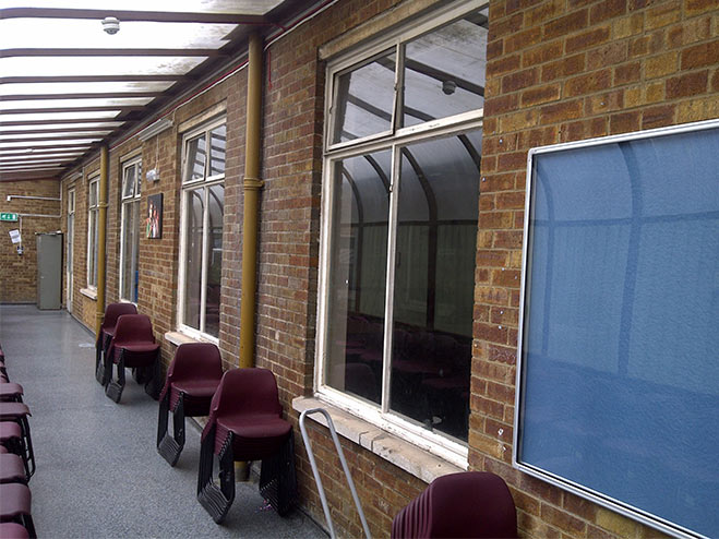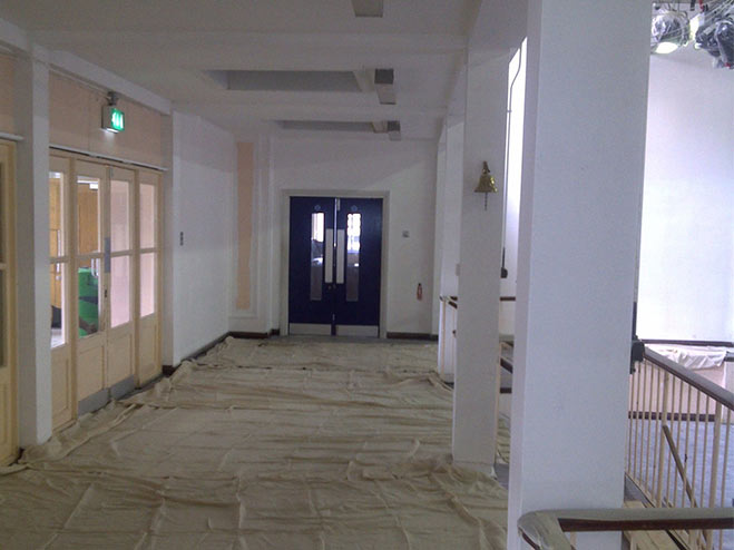 Main school hall renovations, redecoration and replacement windows and doors.