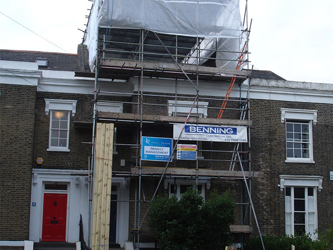 Structural rebuild of existing rear masonry and replacement roof to a Grade II listed building.
